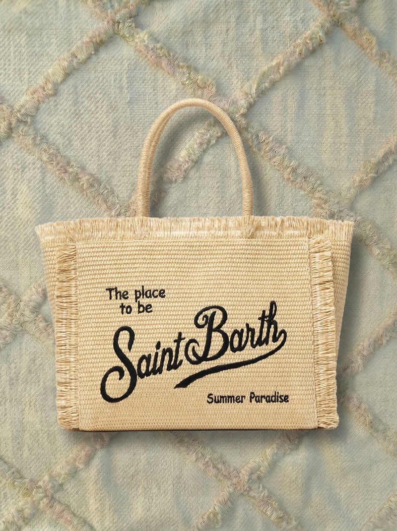 Design iconico con frange, logo ricamato e manici rinforzati. Capiente abbastanza per telo, crema, ciabatte, libro, occhiali e tutto quello che serve per una giornata perfetta in spiaggia. Chiusura zip in alto e tasca interna per telefono e chiavi.