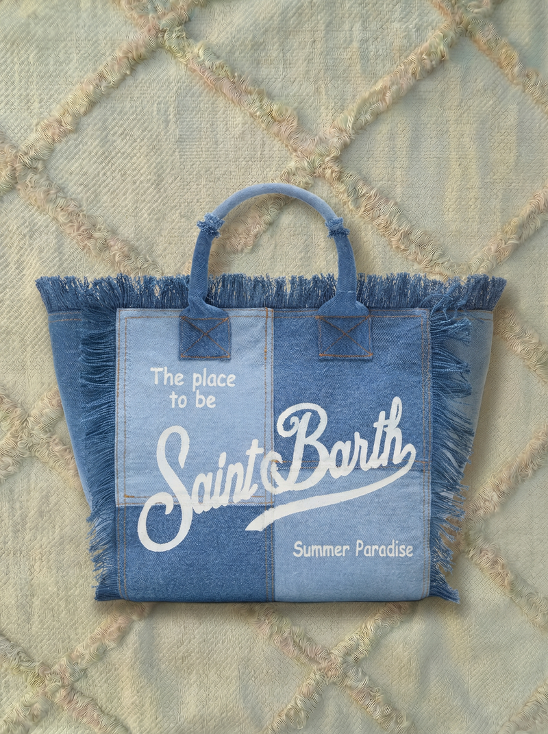 PORTO SEGRETO® - BORSA DA MARE MINI IN LINO AZZURRA