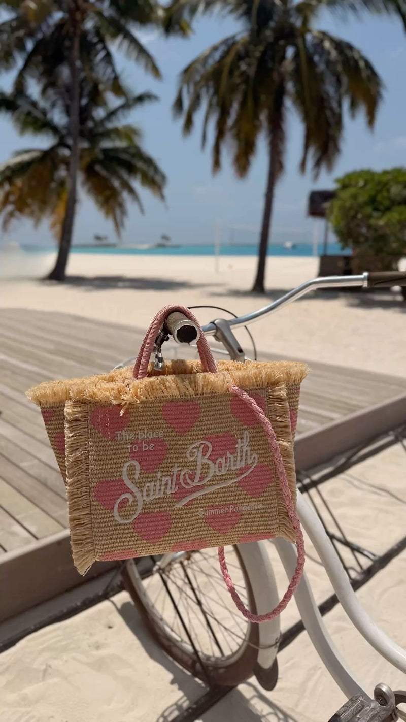 PORTO SEGRETO® - BORSA DA MARE MINI IN LINO ROSA E BIANCA