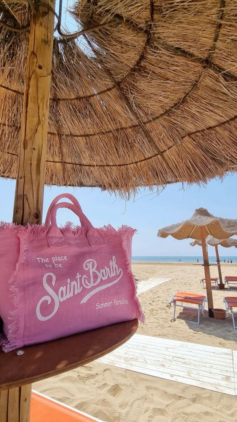PORTO SEGRETO® - BORSA DA MARE MINI IN LINO ROSA